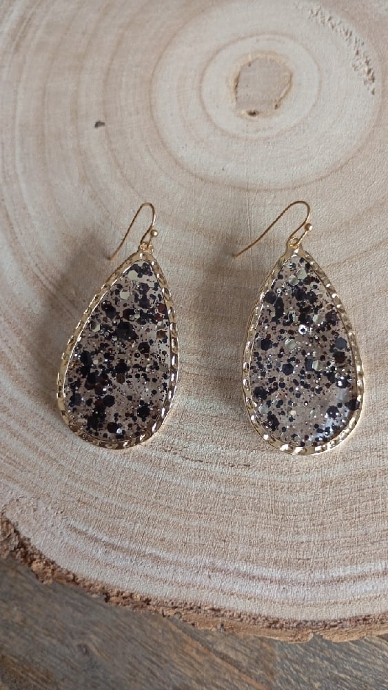 Ces boucles d’oreilles en forme de goutte sont l’accessoire parfait pour illuminer n’importe quelle tenue. Leur structure en acier inoxydable doré, à la fois élégante et durable, accueille un insert en résine pailletée décliné en deux versions irrésistibles :