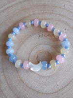 Ses nuances pastel (bleu, rose, ivoire) apportent une touche apaisante et lumineuse Ă ton poignet.