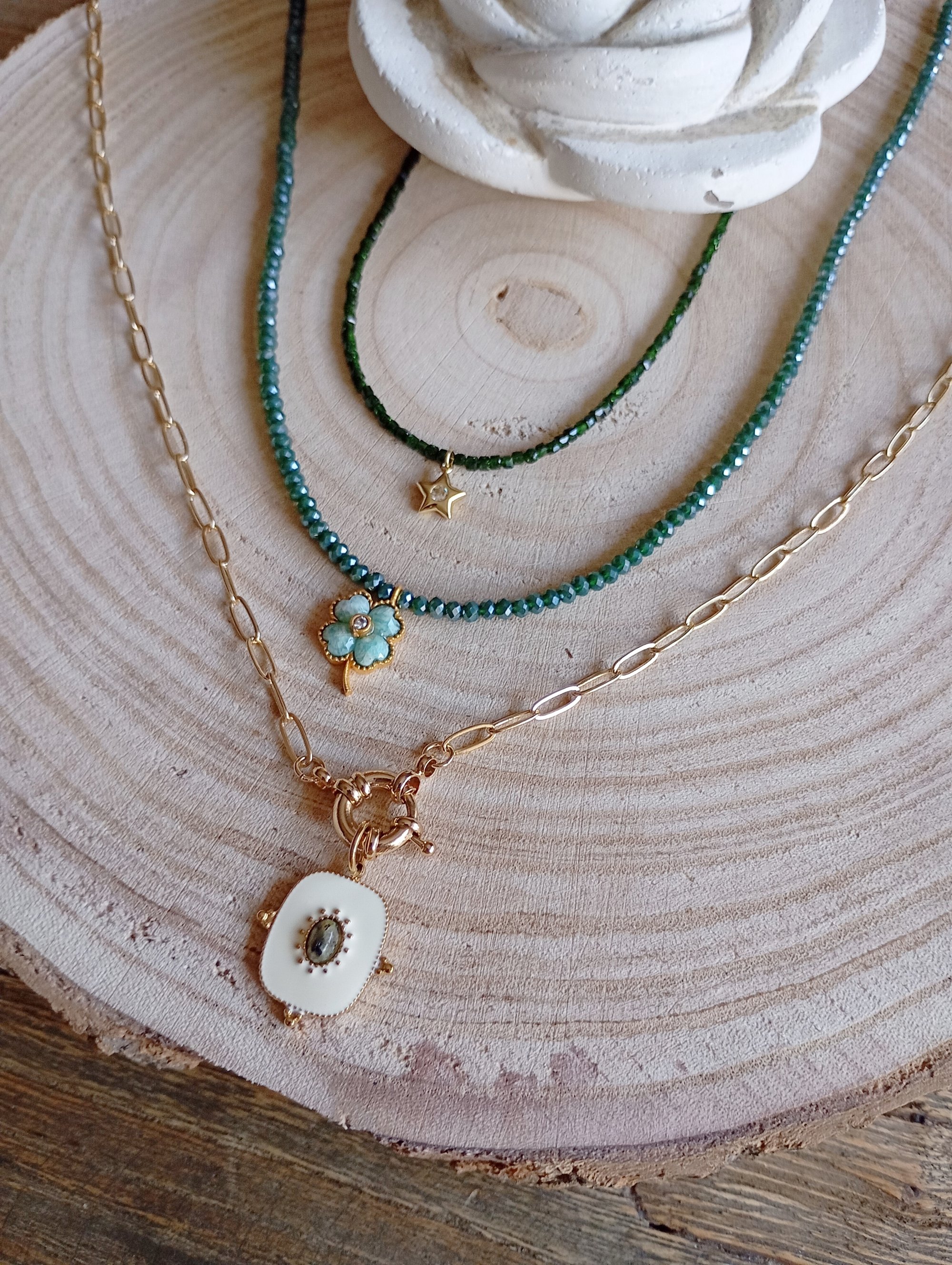 Le collier Constellation est composé de petites perles de Grés et de sa magnifique étoile doré à l'or fin 18K et son zirconium.
