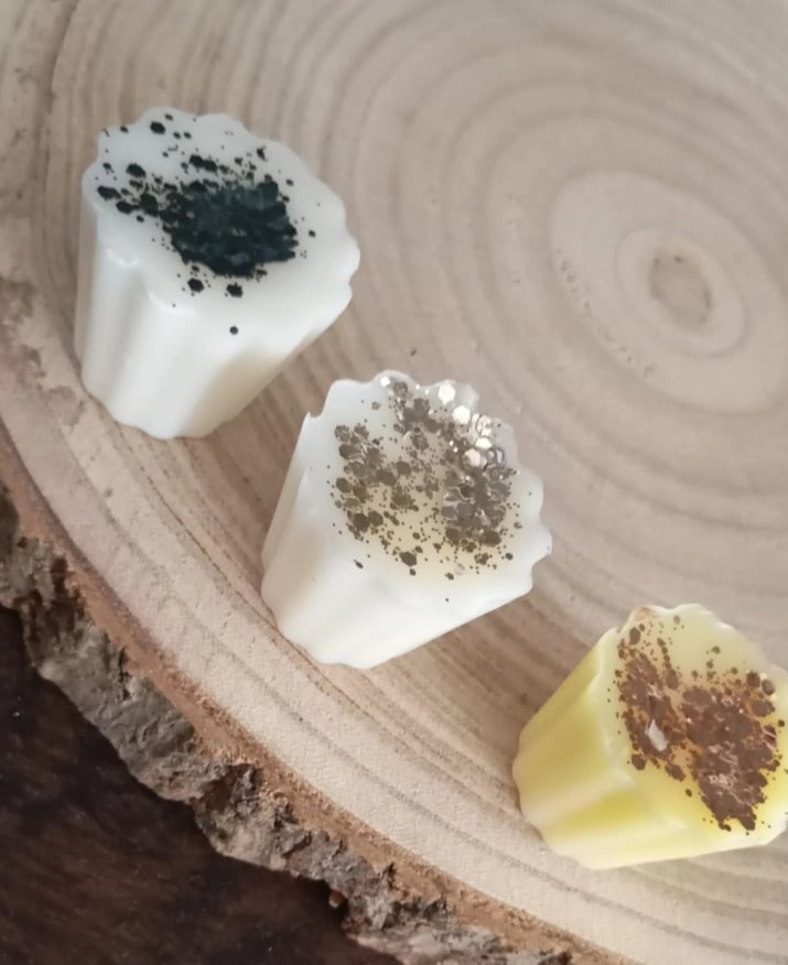 Laissez-vous transporter par une atmosphère chaleureuse et scintillante grâce à nos fondants parfumés artisanaux, coulés à la main dans notre atelier. Chaque fondant est orné de paillettes pour une touche de magie dans votre intérieur.