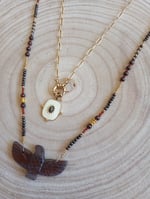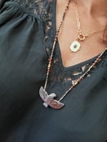 Sautoir unique orné d’un aigle sculpté en Agate indienne, symbole de force et de liberté.